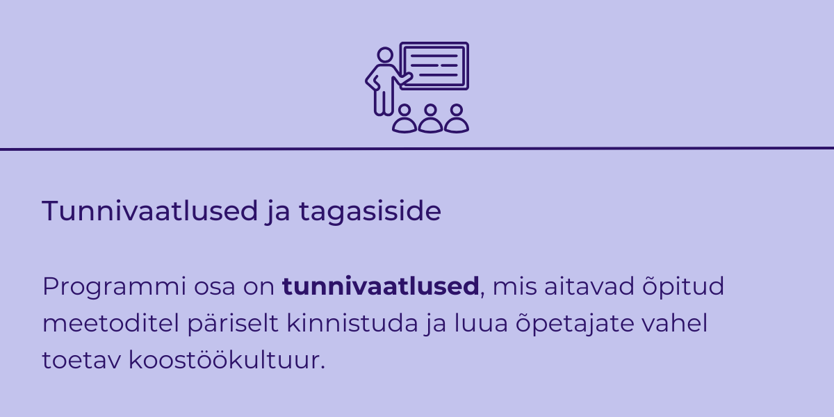 Programm põhineb õpiringide meetodil, kus kooli meeskond õpib ja areneb koos. Erinevalt tavapärastest koolitustest on rõhk õpitu kohesel rakendamisel ja vastastikusel toetusel.